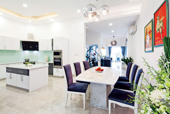 Không gian thoáng, nội thất đơn giản tạo sự dễ chịu cho phòng ăn và bếp.