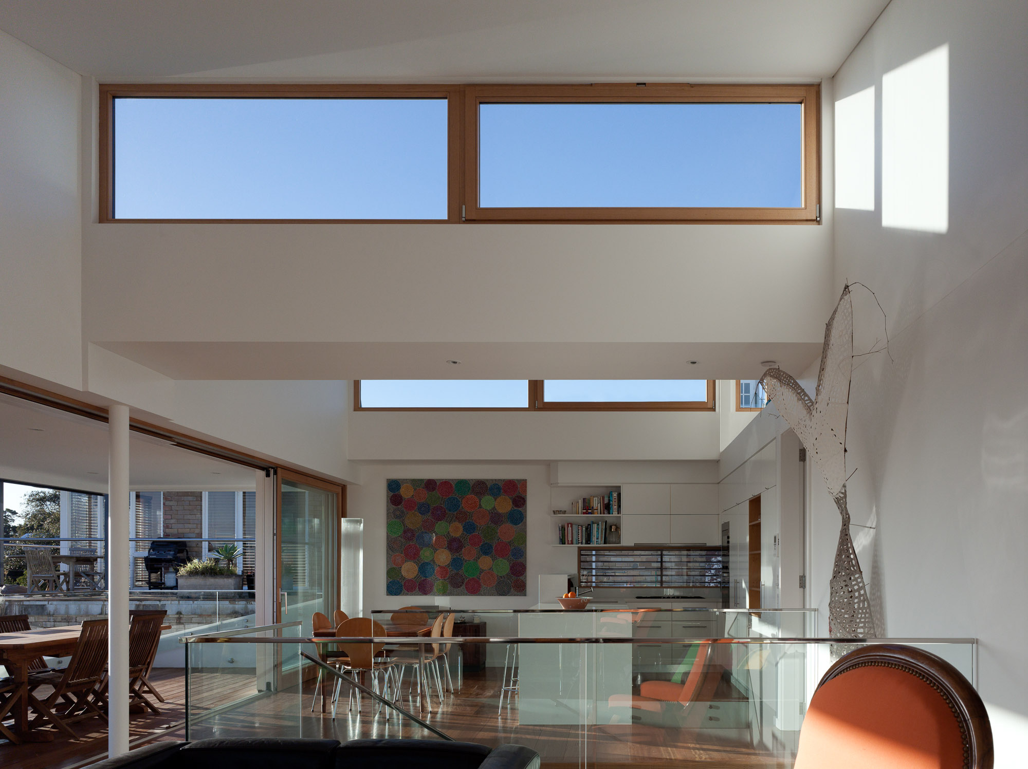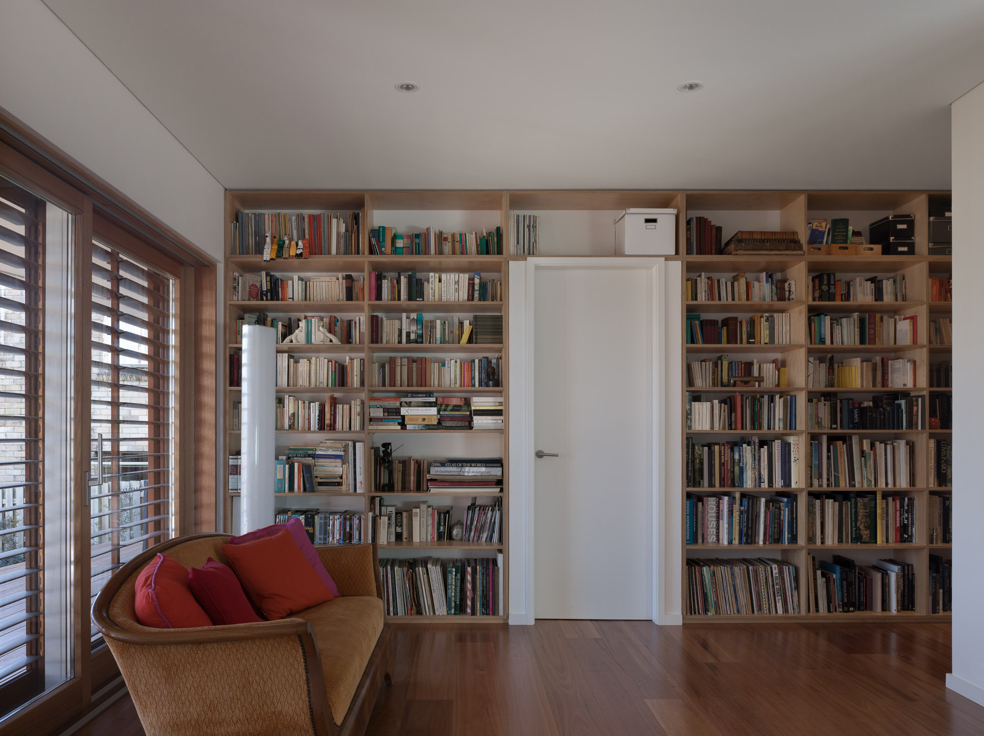 Bên trong ngôi nhà được sắp xếp theo kiểu không gian rộng mở, giúp cho mọi hoạt động trong nhà vẫn có thể kết nối với bên ngoài. Tầng trệt chia ra gồm phòng ngủ kiểu dáng đơn giản với các khu vực nhà kho ngăn theo chiều dọc. Một thư viện tại nhà tuyệt vời là nơi ấp ủ những dự định mới. Đồng thời đây cũng được xem là góc thư giãn hay phòng nghiên cứu tại nhà, thật sự là một thiên đường (các kiến thức) dành cho người yêu sách. Trên hết, với cấu trúc mới của ngôi nhà, dấu ấn mà nó để lại cho bất cứ ai nhìn thấy quả là không thể phai nhạt. “Dự án này kết hợp các hệ thống tiên tiến mang lại hiệu quả cao, bao gồm một bể nước mưa riêng biệt dưới boong, trong mái nhà là tấm pin mặt trời dạng ống sơ tán cung cấp nước nóng và thủy lực sưởi ấm. Tất cả đều nằm bên phía trên của khu vực nghiên cứu tại nhà.” (Ảnh: Richard Glover).