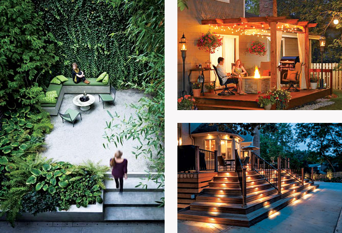 Lẽ thường, cái thú tận hưởng nắng gió đó chỉ có thể thoả mãn cho gia chủ… vào ban ngày. Điều đó không có nghĩa là đến đêm thì cái khoảng sàn thú vị này trở thành vô dụng đâu nhé. Bằng sự bố trí, xếp đặt khéo léo ánh sáng nhân tạo từ các dạng đèn phục vụ mục đích chiếu sáng lẫn trang trí, đặc biệt là đèn chiếu lối đi, bậc thang… về đêm, “deck” trở thành một thế giới khác hẳn, ấm cúng, gần gũi và tĩnh tại. Việc bố trí đèn không khó, nhiều cách, nhiều chủng loại, nhưng cần chú trọng về kiểu dáng sao cho hài hoà với phong cách kiến trúc và cảnh quan sân vườn. Ngoài ra, chúng ta cũng có thể lắp đặt thêm đèn tạo nhiệt làm ấm không khí và sàn ngoài trời vào những khoảng thời gian nhiệt độ xuống thấp, nhất là các khu vực có khí hậu thay đổi rõ rệt theo mùa và các giờ trong ngày.