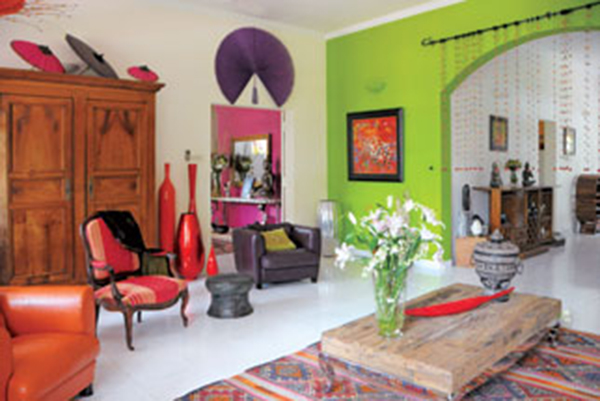Biệt thự của Pascaline và Shane là một sự pha trộn các phong cách, màu sắc, các đồ vật trưng bày thuộc các thời đại khác nhau, những vật liệu này tạo ra một không gian sặc sỡ, đa dạng và khác thường.