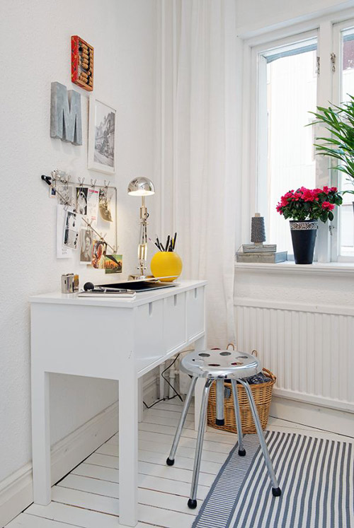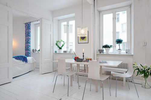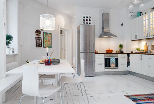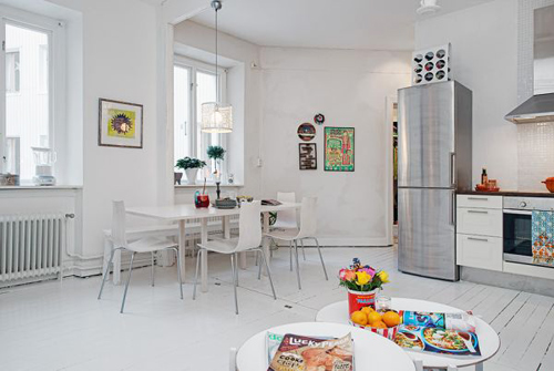 Hầu hết các căn hộ và nhà ở Thụy Điển mà chúng tôi từng giới thiệu đến các bạn đều có thiết kế nội thất rất đơn giản và tươi sáng. Đó là một phong cách rất đẹp được dựa trên những đường nét tối giản, rạch ròi. Một vài căn hộ, bao gồm cả căn hộ này, sử dụng màu trắng làm nền và bổ sung màu sắc đầy ấn tượng từ đồ nội thất, tranh ảnh, phụ kiện trang trí và những đồ vật khác.