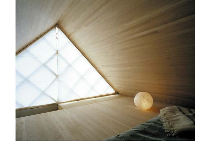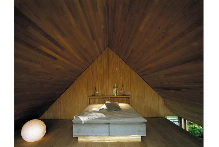 Tầng hai có một cái giường thấp. Trên tầng 2, ngay giường ngủ, có một khe cửa cho rất nhiều ánh sáng (có người sẽ thấy là hơi bị chói!). Nằm đây vẫn thấy lấp ló những tàng cây.