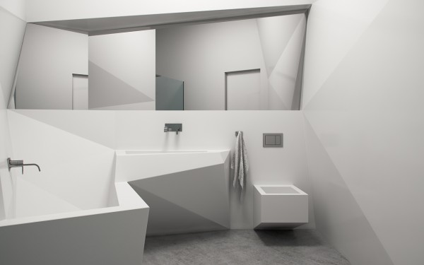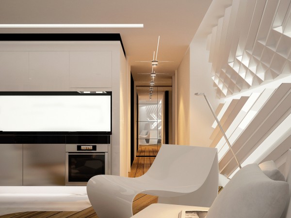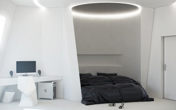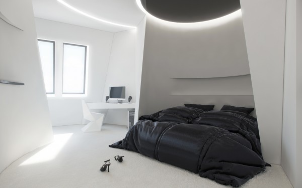 Bằng cách kết hợp các góc cạnh cùng màu sắc tương phản, các căn phòng trong ngôi nhà tương lai này mang phong cách hỗn độn có chủ ý.