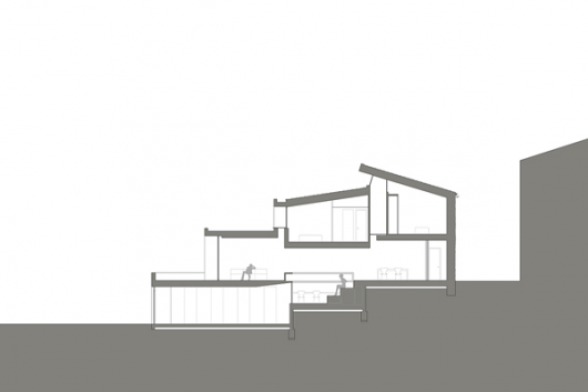 Tầng hầm được chăm chút để thích ứng với những khiếm khuyết cần thiết. Tầng này bao gồm lối vào chính của ngôi nhà, vì vậy kiến trúc sư có ý định tạo ra không gian mở rộng thay vì đặc tính tối tăm của tầng hầm để xe thường thấy.