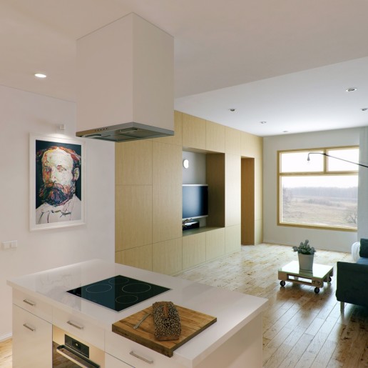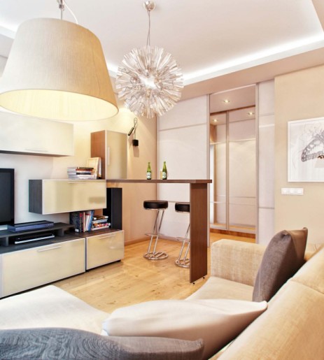 Phòng khách kiêm nhà bếp hiện đại