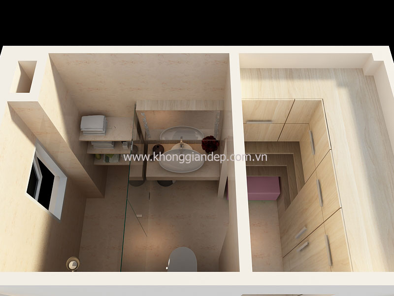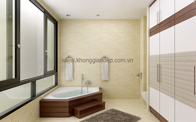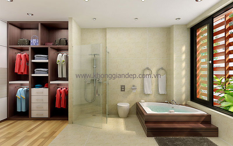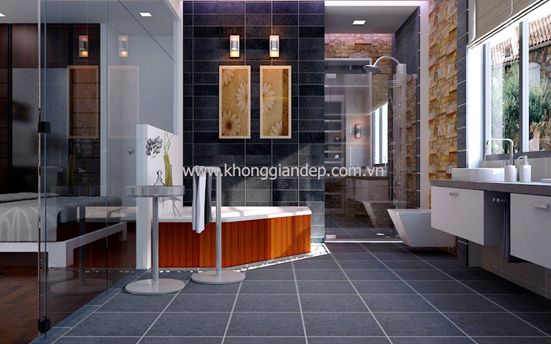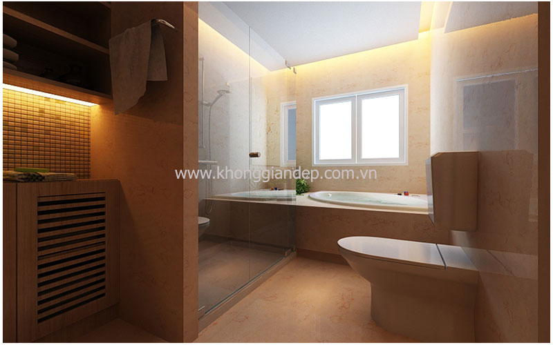 Theo xu hướng hiện nay thì phòng vệ sinh hay được thiết kế gộp cùng khu vực tắm và lavabo để tiết kiệm diện tích cũng như tiện lợi cho sinh hoạt khép kín từng phòng.