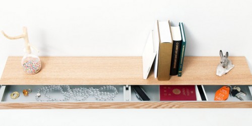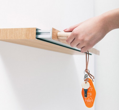 Chiếc kệ sách với hộc kéo bí mật này là sản phẩm mới nhất của văn phòng thiết kế Torafu Architects. Thoạt nhìn, chúng ta sẽ nhầm tưởng sản phẩm này được làm từ gỗ, nhưng không, vật liệu chính của nó là nhôm. Vân gỗ trên bề mặt chỉ là những bản in màu khéo léo. Chính vì vậy mà nó đòi hỏi một quá trình sản xuất có độ tinh tế cao.