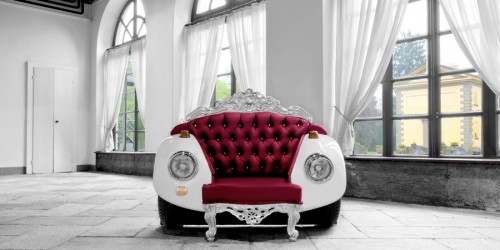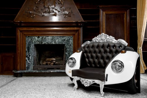 Phong cách Car Art và Baroque được thể hiện rõ nét trên mẫu ghế Glamour Beetle, đây là sự kết hợp đầy thú vị từ những đường nét hoa văn uốn lượn mềm mại của kiến trúc cổ điển cùng mô hình hiện đại mang hơi hướng cơ khí. Hai khái niệm tách biệt tưởng chừng không hề liên quan đến nhau, lại được hai nhà thiết kế lồng ghép một cách tinh tế để đem lại những điểm nhấn khác lạ cho không gian sống.