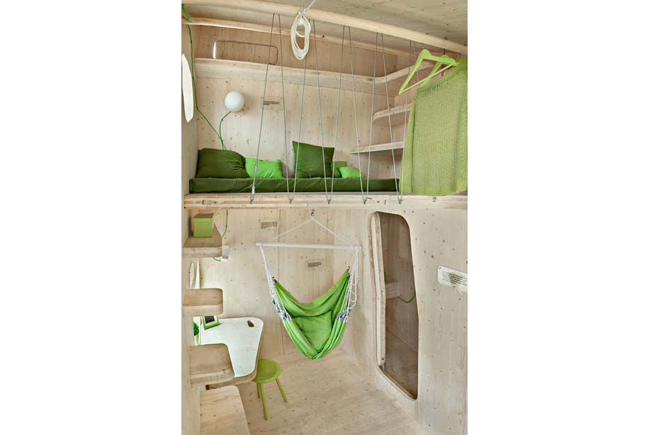 Mọi thứ trong nhà là vật liệu tự nhiên, thân thiện với môi trường theo đúng nghĩa, nhất là ở khía cạnh không lấn át cảnh quan. Màu sắc tươi sáng, nhìn như những cái nấm con hay nhà của các thần lùn!