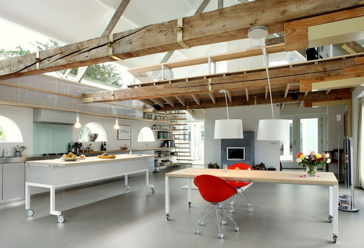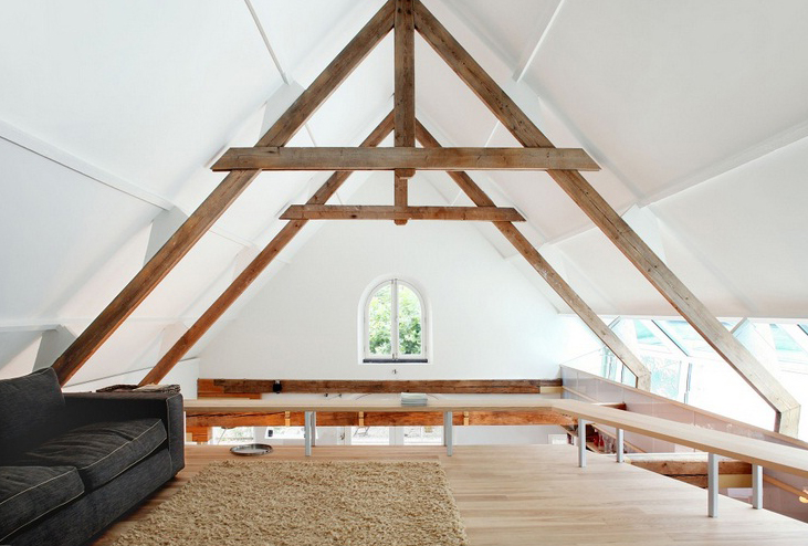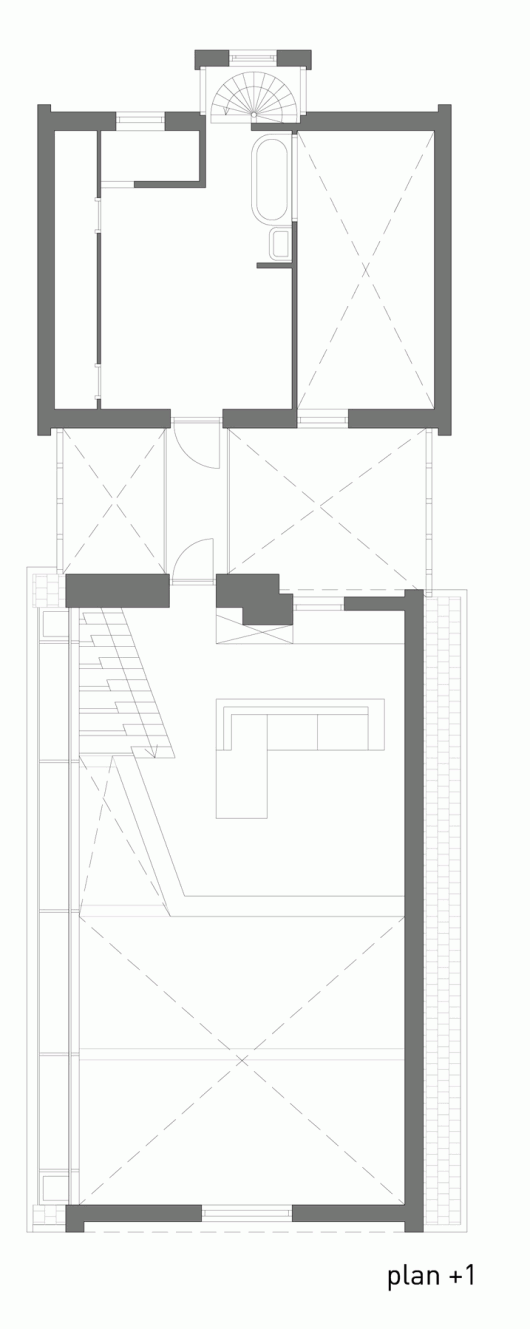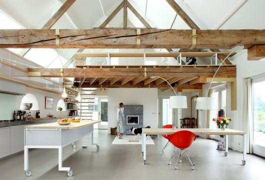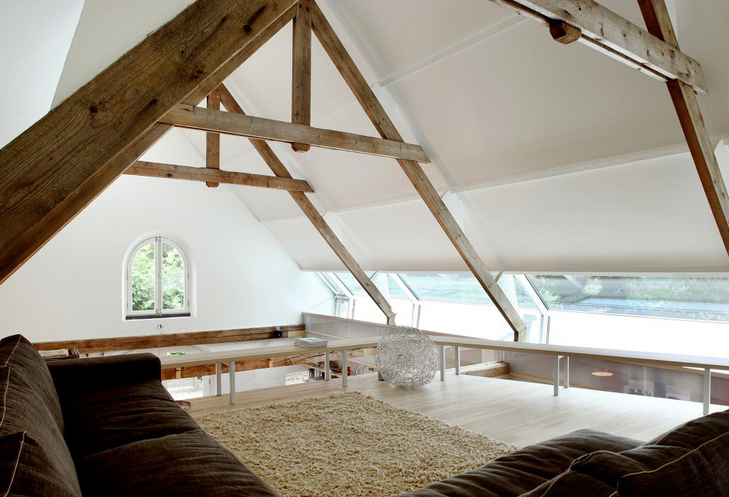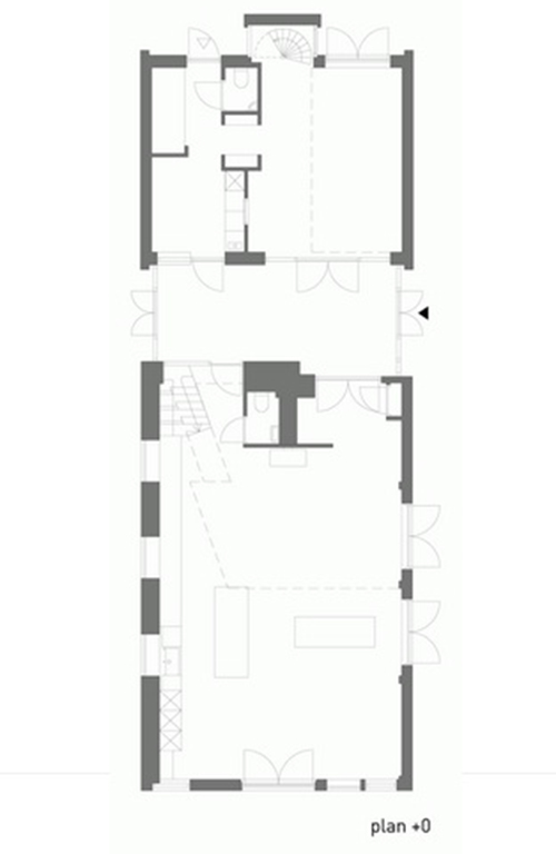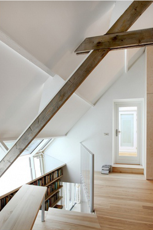 Các kiến trúc sư đã đề xuất đảo ngược cách bố trí của ngôi nhà, di chuyển các văn phòng và không gian lưu trữ đến phần được mở rộng từ người chủ cũ để có không gian riêng tư cho ngôi nhà. Một khe lớn đã được cắt đến mái nhà để ánh sáng chiếu vào. Cuối cùng, những đồ nội thất được đưa vào cùng lúc để tạo nên bếp, nhà kho, cầu thang và thư viện.