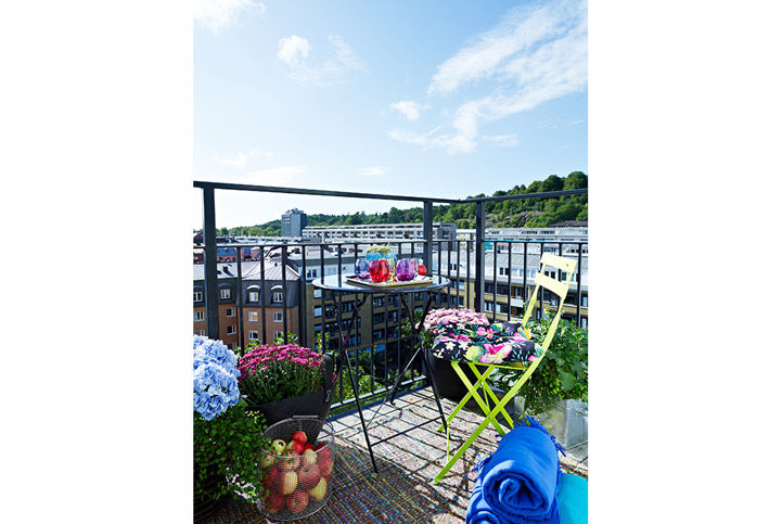 Những cánh cửa lớn từ phòng khách mở vào một ban công thực là tuyệt vời, tuy bé nhưng nhìn ra khung cảnh rất đẹp, với những mái nhà đỏ lô nhô bên dưới, những rặng núi xa.