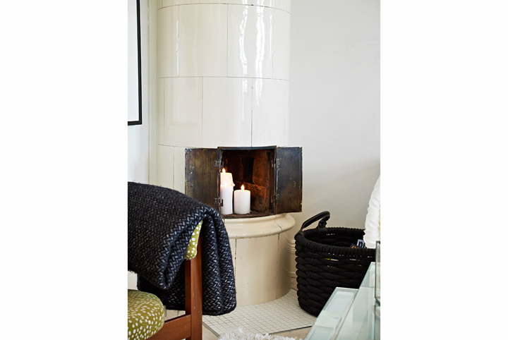 Góc phòng khách là một lò sưởi nhỏ xinh, hữu dụng vào mùa đông và hầm hố vào mùa hè.