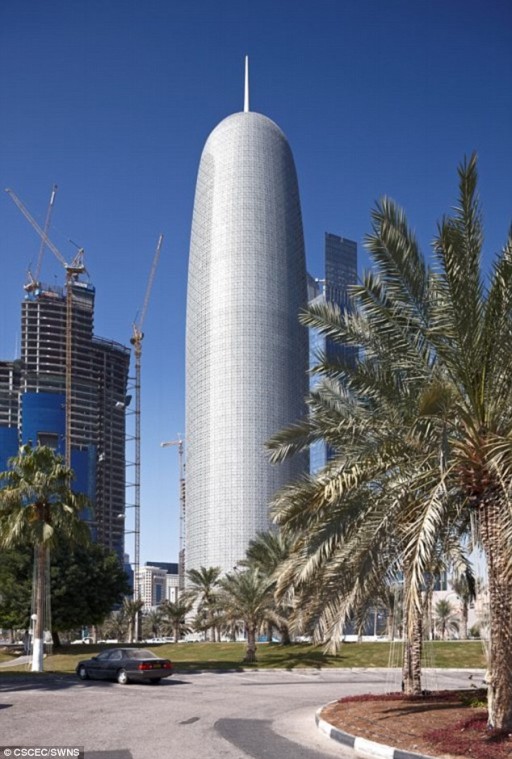 Tòa nhà Burj Qatar cao 830m nằm ở Doha, Qatar giành giải ba. Với chiều cao “khủng”, tòa nhà Burj Qatar phải đối diện với nguy cơ bị sét đánh rất cao. Vì vậy, trên chóp của tòa nhà là một cột thu lôi khổng lồ.
