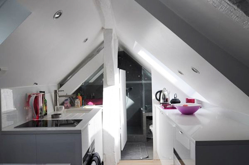 Khi bạn nghĩ về nó, đây có lẽ là giải pháp tốt nhất nếu bạn muốn có một gian bếp, một phòng tắm, khu vực sinh hoạt và làm việc tất cả trong căn gác mái này. Diện tích nhỏ đã được tận dụng tối đa.