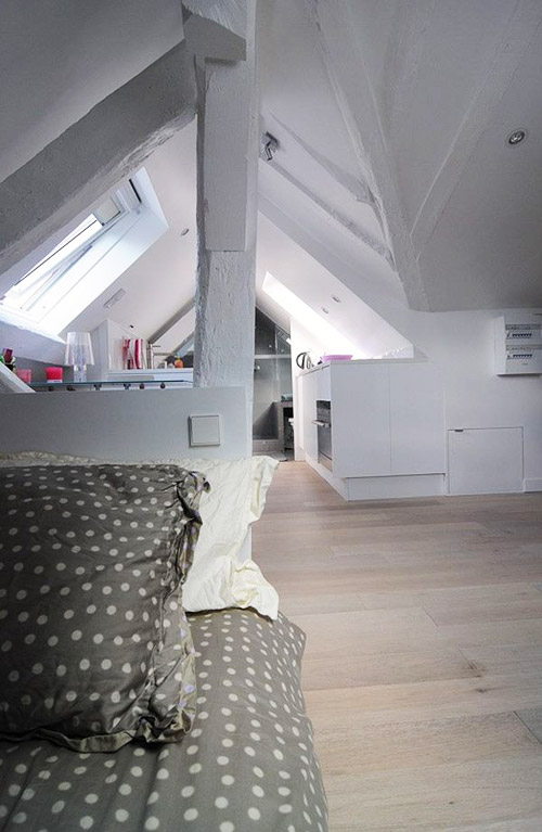 Phân chia không gian hợp lý là ưu điểm của căn gác mái chỉ 16m2 này.