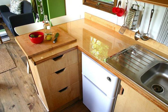 Nhà rộng 40 mét vuông (không tính căn gác dùng làm phòng ngủ ở phía trên). Hai anh em lấy một chiếc xe toa moóc cũ để xây lại thành căn nhà này, nó có hai trục nặng 1590 kg và toàn bộ tòa nhà nặng khoảng 2722 kg.