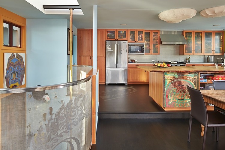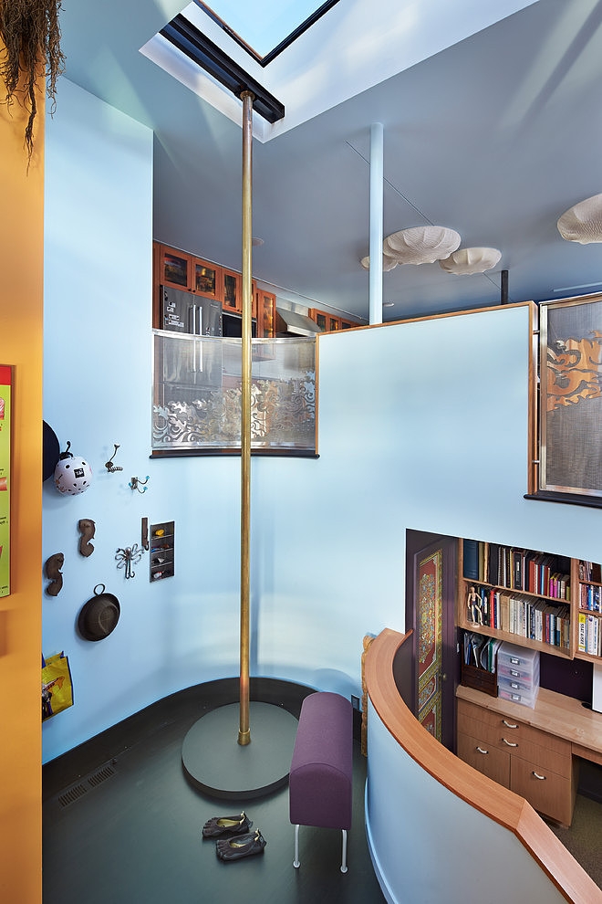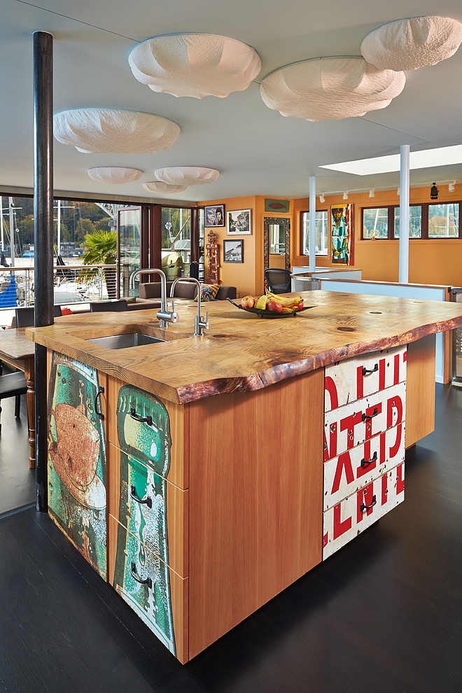 Sàn nhà được xây mở và thoáng mát cho phép nhìn ra quang cảnh độc đáo và xinh đẹp xung quanh. Đồ nội thất vô cùng sống động và vui tươi, phản ánh niềm đam mê của chủ nhà đối với nghệ thuật và văn hóa. Không gian sống động ở bến cảng là một trải nghiệm hấp dẫn, tuy nhiên không phải ai cũng cảm thấy thoải mái với điều đó. Dù vậy, những người sinh sống trên mặt nước sẽ tìm thấy sự thú vị ở ngôi nhà nổi này.