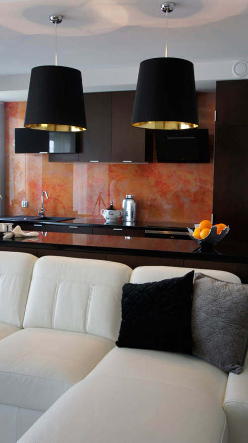 Những nhà thiết kế nội thất đã chọn một phong cách thời thượng và muốn tạo nên một thiết kế đa năng, đơn giản mà vẫn tinh tế. Ngay khi bước vào căn hộ, bạn có thể thấy những bức tường ngăn cách mờ “che giấu” các phòng. Khu vực phòng khách là một không gian mở bao gồm bếp nấu, bàn ăn và khu vực ghế sofa nghỉ ngơi và tiếp khách.