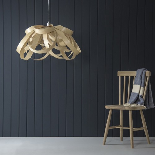 Các thiết kế của Tom Raffield chịu ảnh hưởng từ môi trường trưởng thành, sống và làm việc ở Exmoor hoang dã và miền quê Cornwall. Đèn Bloom là một trong những đứa con tinh thần của anh thể hiện rõ nét nguồn cảm hứng đến từ thiên nhiên đó. Những cánh hoa vòng cung mềm mại xếp thành một hình dạng đối xứng bao quanh bóng đèn, màu sắc thanh lịch, tươi sáng và ấm áp được chế tác từ gỗ cây tần bì, sồi và gỗ óc chó hoặc kết hợp giữa gỗ sồi và gỗ óc chó.