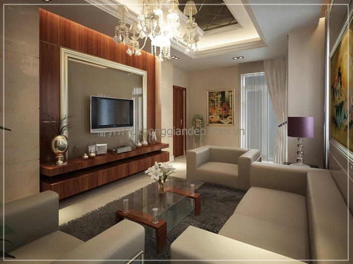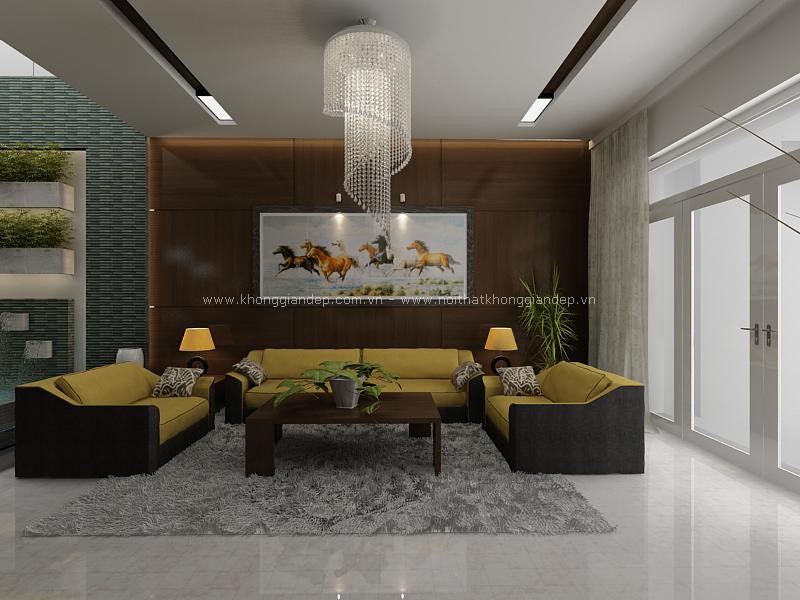 Dưới đây là một số mẫu phòng khách lộng lẫy với đèn chùm do các kiến trúc sư Không Gian Đẹp thiết kế:
