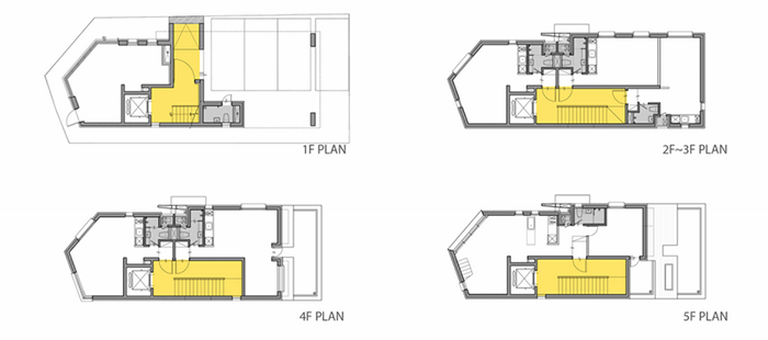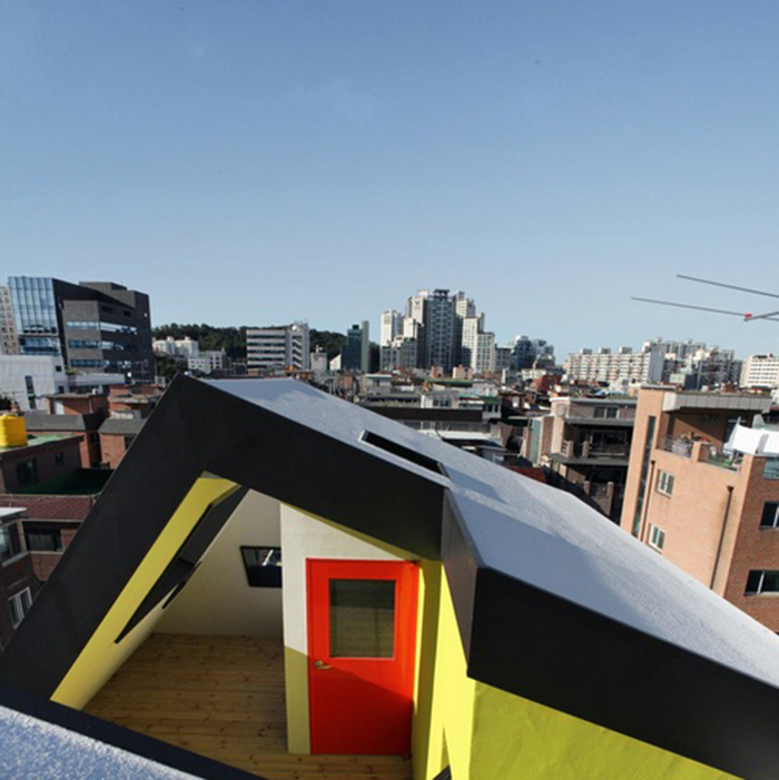 Tòa nhà nằm giới hạn trong một khu vực rất nhỏ, thậm chí nhỏ ngay cả với một căn nhà: rộng 8 mét và dài 20 mét, diện tích mặt bằng là 175m2. 9 căn hộ mini ở ghép đã được xây trong cùng một tòa nhà 5 tầng nhỏ nhắn này. Đây cũng là trường hợp chung cho tất cả những căn nhà cho thuê tại Hàn Quốc khi việc xây dựng phải thu được lợi nhuận và mang lại giá trị kinh tế, đồng thời cũng tạo nên sự dễ chịu và làm hài lòng người thuê nhà.