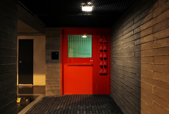 Cửa ra vào mỗi căn hộ được sơn màu đỏ, còn cửa sổ lớn có tầm nhìn xuống các con đường nhỏ nhắn ở Seoul. Các kiến trúc sư đã tận dụng tối đa vị trí của mảnh đất khi thiết kế các cửa sổ ở một mặt có tầm nhìn, giúp kết nối mỗi căn hộ với không gian mở bên ngoài vì ba mặt còn lại của tòa nhà đều đối mặt với đường phố ồn ào.
