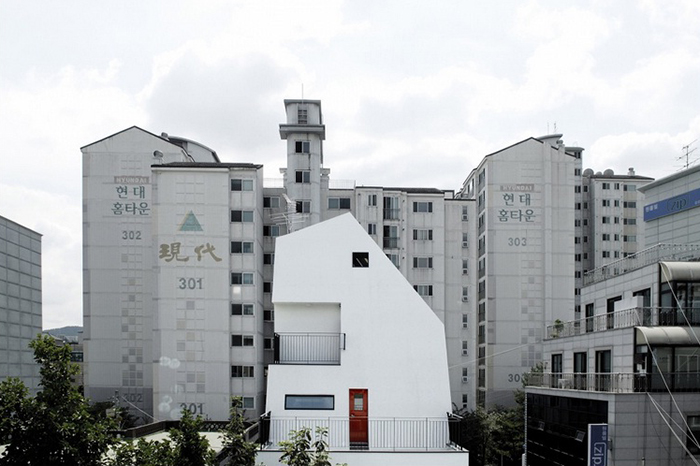Tên Hàn Quốc của tòa nhà trắng này là YOAP, nghĩa là chỉ quanh đây hoặc gần đó. Tòa nhà nhỏ nhắn này đứng trong góc của khu dân cư cũ tại Bangbae-dong, tạo ra hình ảnh quen thuộc cho khu phố.