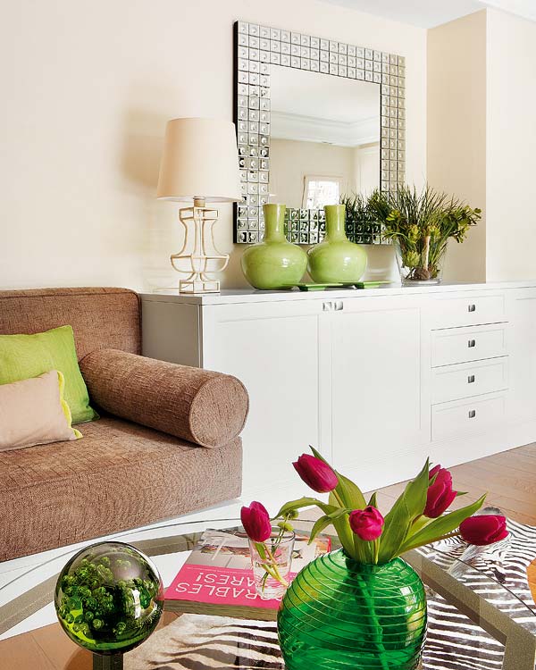 Sự xuất hiện của bình hoa là điểm nhấn nhẹ nhàng, thư giãn
