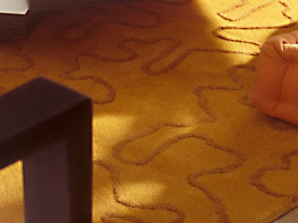 Thảm màu đất son và chiếc bình gốm màu nhạt có cùng giai điệu.