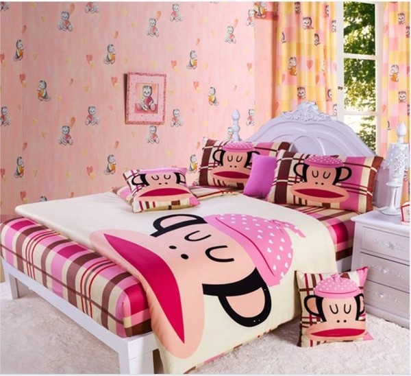 Bộ vỏ ga gối hình nhận vật hoạt hình phù hợp với phòng của trẻ nhỏ.