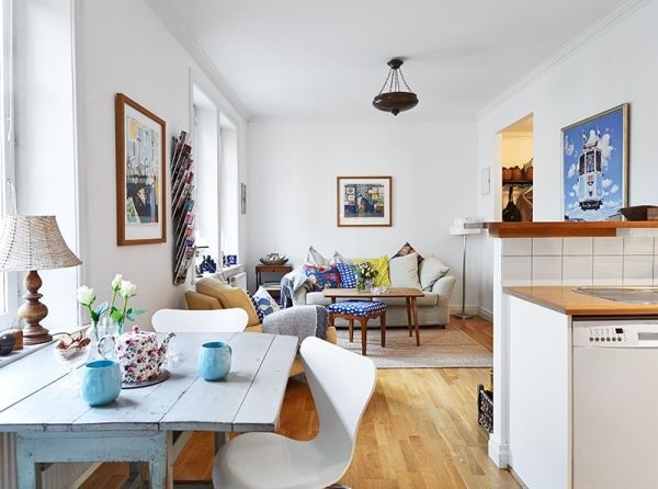 Căn hộ 46m² dưới đây là sự kết hợp của những món nội thất hiện đại và cổ điển. Ngoài ra, chủ nhân của căn hộ cũng sử dụng nhiều loại kệ khác nhau để đáp ứng được nhu cầu lưu trữ của gia đình.