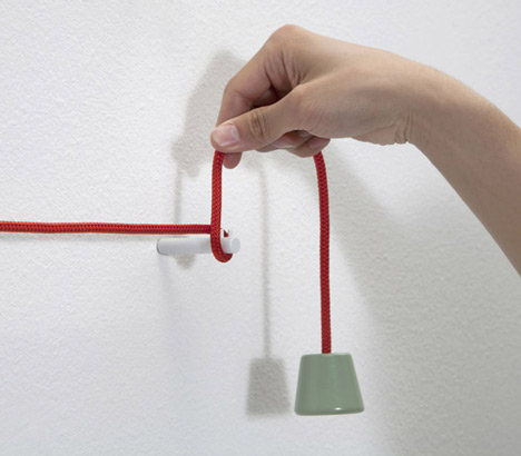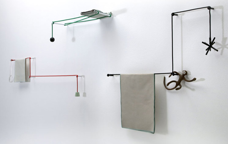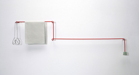Đây là bộ dây móc khăn được đính lên tường bằng cách quấn quanh những chiếc đinh của hãng Hioomi Tahara.