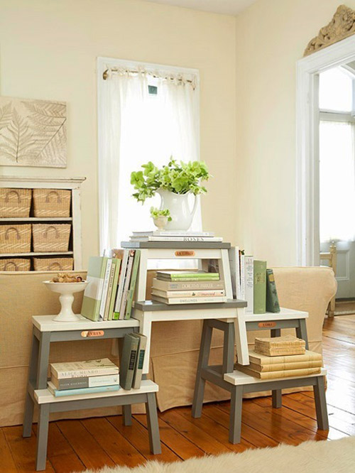 Hãy chồng hoặc dựng đứng những cuốn sách thành từng nhóm trên băng ghế, bàn học hoặc bất cứ nơi nào bạn muốn có thêm một chút nét độc đáo trong nhà.