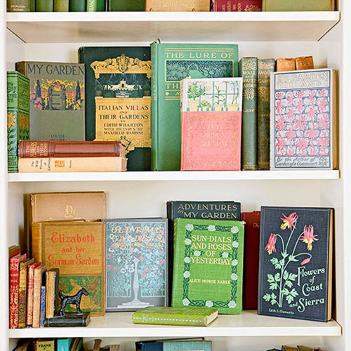 Ai nói rằng gáy sách là phần duy nhất đáng để bày ra? Đừng lãng quên phần bìa sách được thiết kế công phu và đôi khi còn rất màu sắc. Một bộ sưu tập những cuốn sách cổ điển không hề kém hấp dẫn nếu chúng ta xoay bìa sách ra bên ngoài khi sắp xếp.
