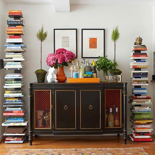 Bản thân những cuốn sách có thể trở thành một tác phẩm nghệ thuật khi xếp chồng lên nhau thật cao. Với cách này, bạn có thể tạo ra một hình tháp rất đẹp mắt.