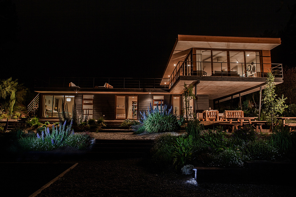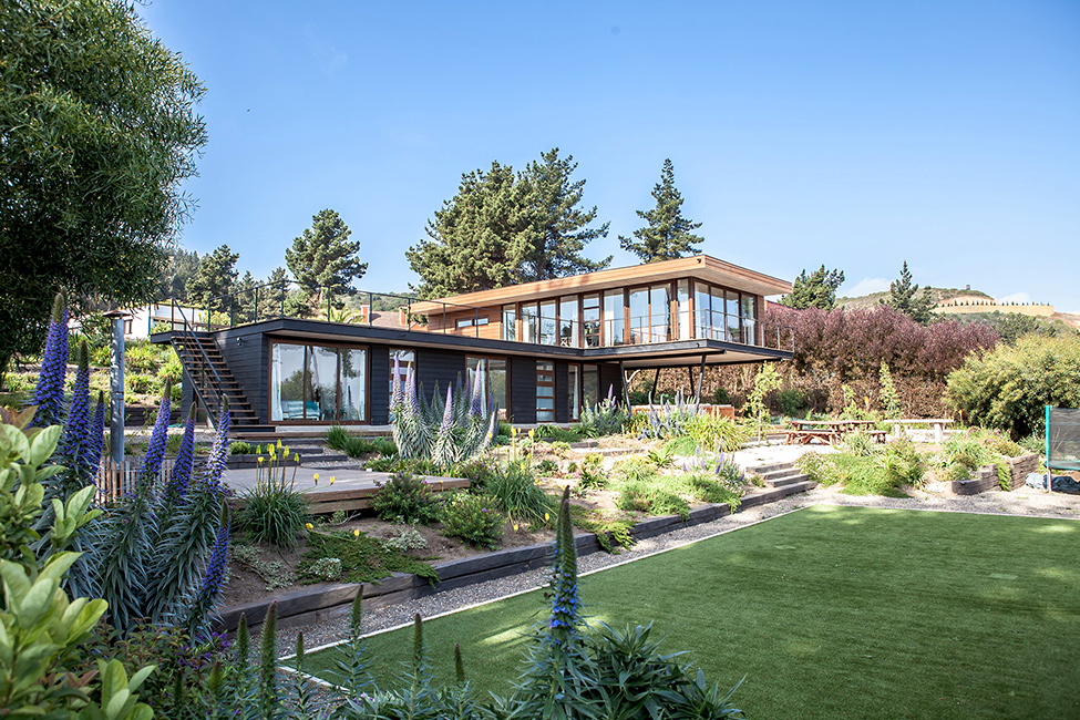 Kiến trúc của biệt thự đáp ứng được đặc điểm dốc của khu đất, khiến nơi đây trở thành nơi lý tưởng cho những ai muốn xa lánh cuộc sống ồn ào và trở về sống trong ngôi nhà truyền thống điển hình. Tầng trệt của biệt thự là nhà bếp, phòng ăn và phòng ngủ mở ra sân, nơi có rất nhiều cây cối và hoa cỏ xanh tươi.