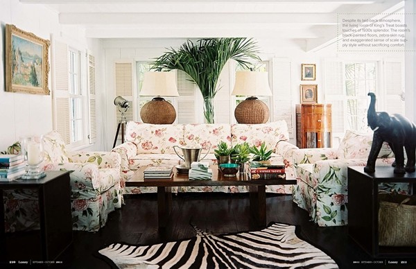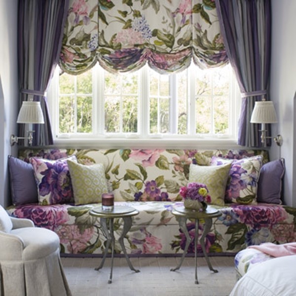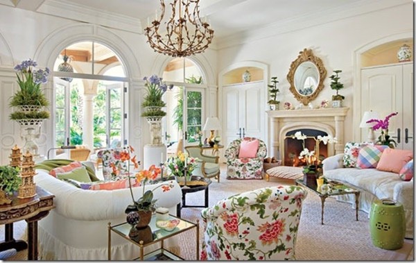 Phòng khách này nhẹ nhàng và tao nhã với những chiếc gối tựa bọc vải hoa rất ăn ý với giấy dán tường hoa.