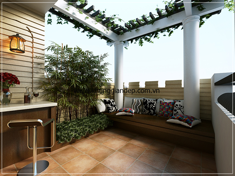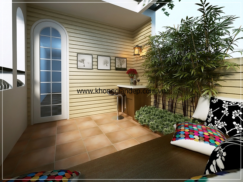 Đặc biệt, chủ nhà muốn có thêm không gian sinh hoạt rộng rãi, thoáng đãng trong một diện tích nhỏ của ngôi nhà, nên kiến trúc sư đã thiết kế một sân thượng thông thoáng và chan hòa ánh nắng. Góc xanh mát của cây cảnh, gió trời và ánh nắng của nơi này chính là không gian tuyệt vời để cả nhà được thư giãn, nghỉ ngơi sau những bộn bề lo toan của cuộc sống thường nhật.