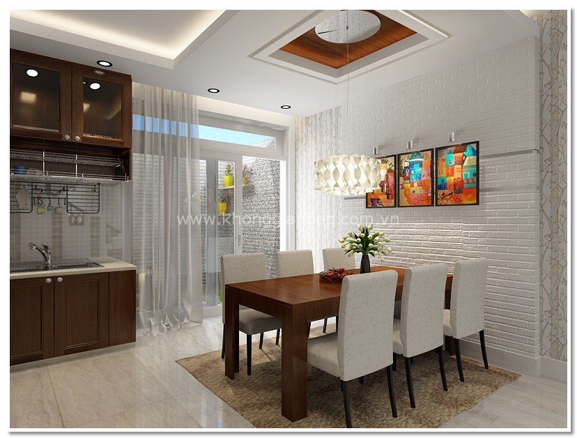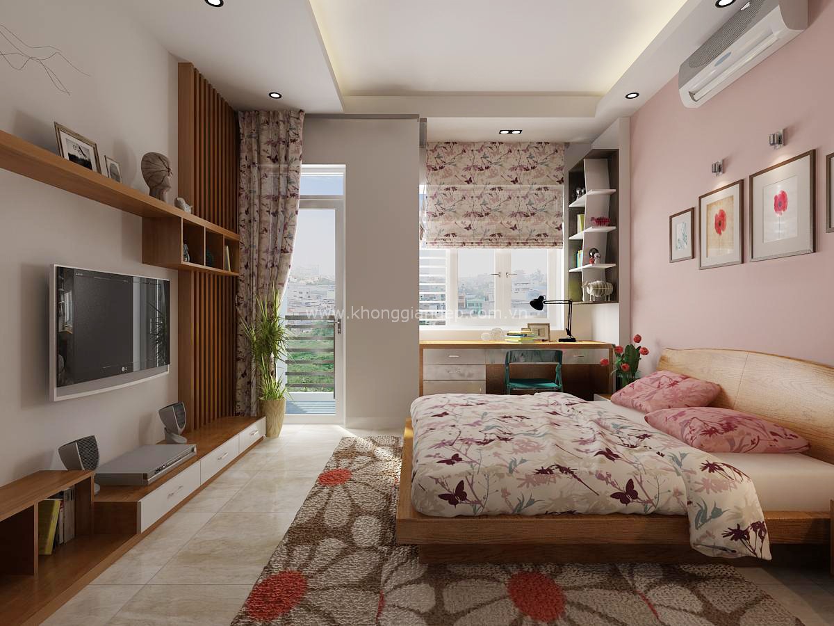 Cửa mở ở hướng Bắc nên trang trí rèm màu xanh, vì hướng này hành sinh vượng là Thủy