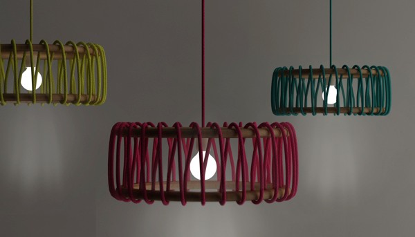 Để sáng tạo một chiếc đèn treo thu hút người nhìn, nhà thiết kế người Tây Ban Nha, Silvia Ceñal Idarreta đã nghiên cứu và tìm tòi để kết hợp các vật liệu gỗ, bóng đèn và sợi vải một cách hài hòa. Nếu như gỗ mang đến sự vững chắc, mạnh mẽ thì những sợi dây nối mảnh mai lại tạo nên sự mềm mại và quyến rũ nhất định của chiếc đèn. Thêm vào đó, các màu sắc hồng, xanh, vàng trẻ trung cũng khiến cho người ta liên tưởng đến những hương vị khác nhau của chiếc bánh Macaron ngọt ngào…