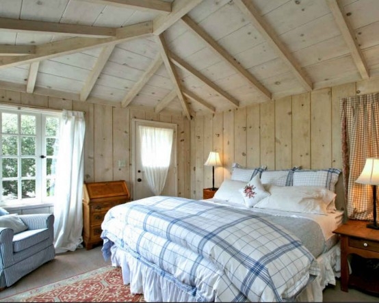 Phòng ngủ ấm áp với gam màu gỗ sáng cùng bộ chăn ga kẻ ca rô