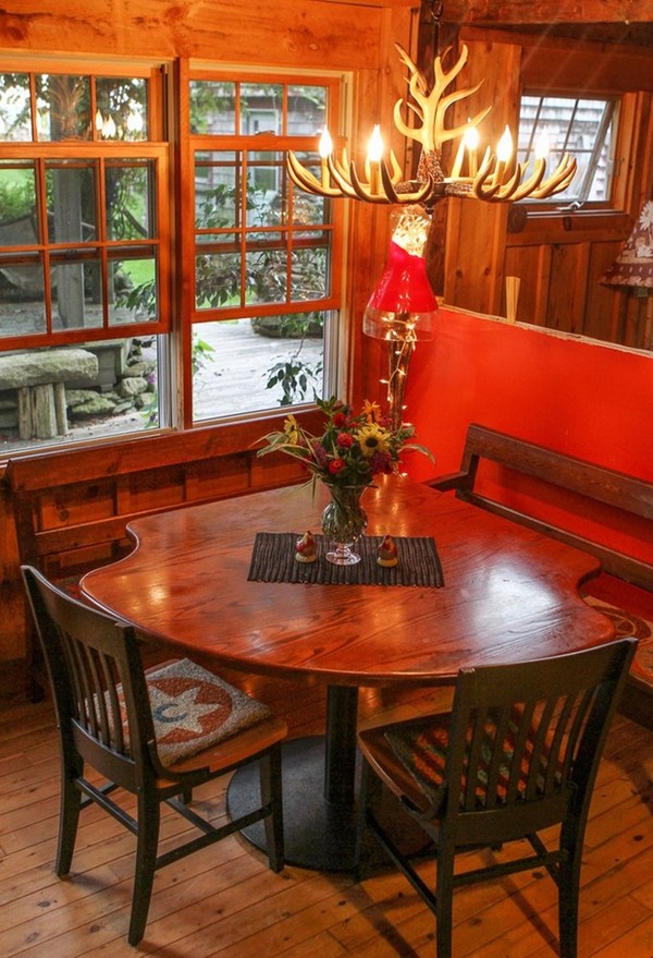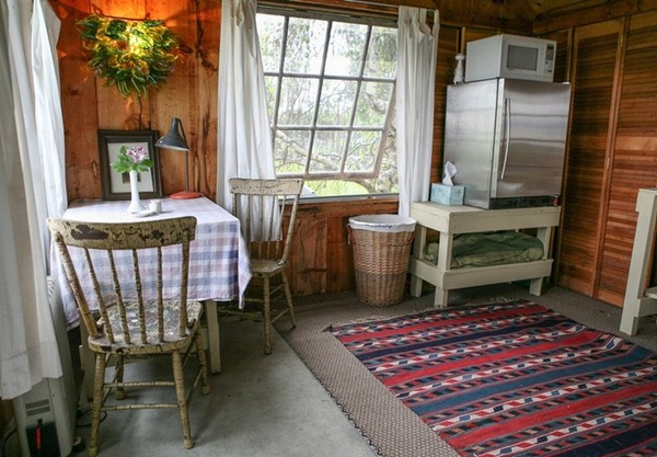 Góc ăn uống cũng rất cổ điển với bộ bàn ăn nhỏ trải khăn kẻ và bộ ghế nhuốm màu thời gian.