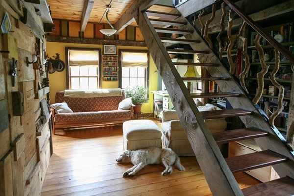 Lan can cầu thang được làm bằng những cành cây khô chọn lọc và chắc chắn.