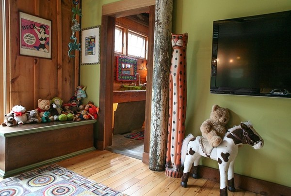 Phòng tắm cũng đậm chất cá tính và đặc sắc. Bên ngoài phòng tắm được bài trí với thú bông và những con vật bằng gỗ có hình dáng lớn mà hai vợ chồng tìm mua được.