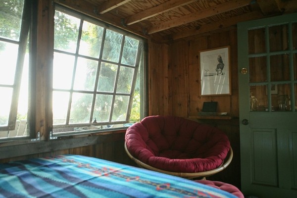 Góc đọc sách với chiếc ghế bấp bênh mua từ cửa hàng đồ cũ.