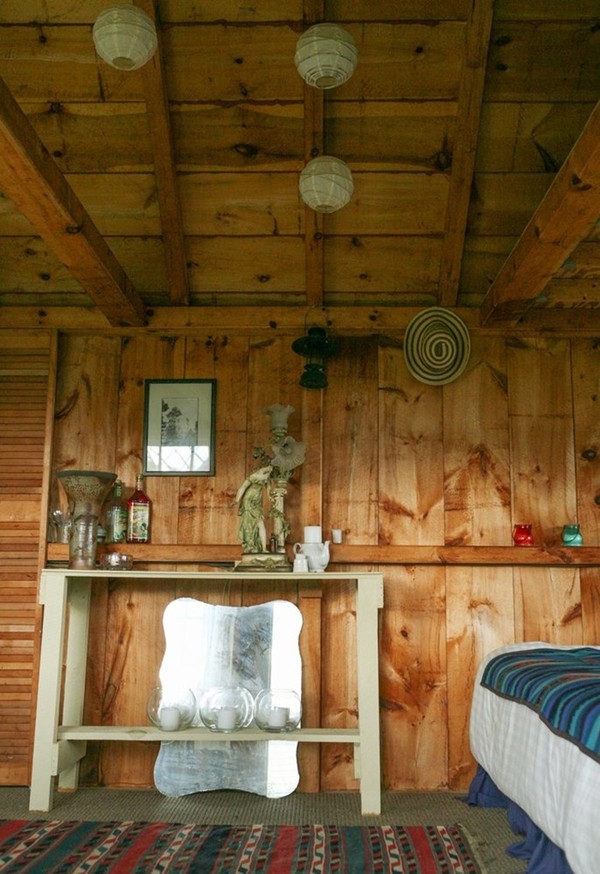 Phòng ngủ thứ hai mộc mạc với chất liệu gỗ với nhiều màu sắc rực rỡ.