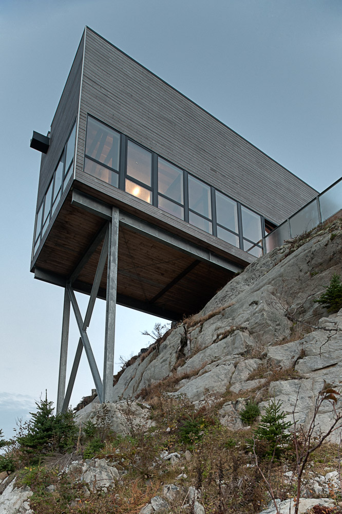 Với cái tên như gợi ý, Cliff House (tạm dịch là Nhà Cheo Leo), dự án hoàn thành trong năm nay bởi hãng MacKay-Lyons Sweetapple Architects là ngôi nhà trải dài trên các cạnh của một vách đá ven bờ biển Đại Tây Dương lộng gió của vùng Nova Scotia, Canada. Như một nơi yên tĩnh dành cho việc tu tập bên bờ biển hiền hòa, việc xây dựng ngôi nhà tưởng chừng như không thể khi nhìn từ xa, ngôi nhà như hình ảnh ảo giác nổi trên đại dương. Là chốn nghỉ ngơi cuối tuần cho một gia đình đi lại như con thoi giữa California và Nova Scotia, ngôi nhà gồm hai tầng được xây từ gỗ và khung thép đơn giản, trở thành nơi ẩn náu tuyệt vời để thoát khỏi cuộc sống bận rộn.