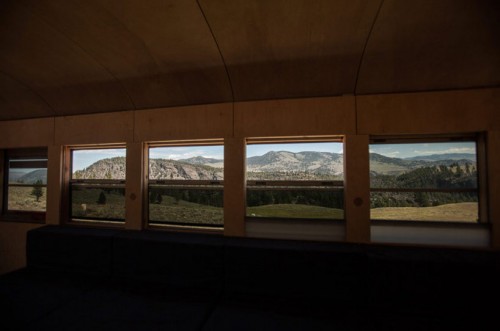 Cảnh quan tươi mát của vùng Yellowstone hiện ra sau cửa sổ