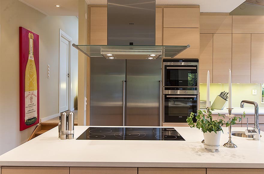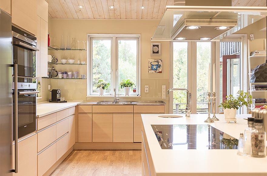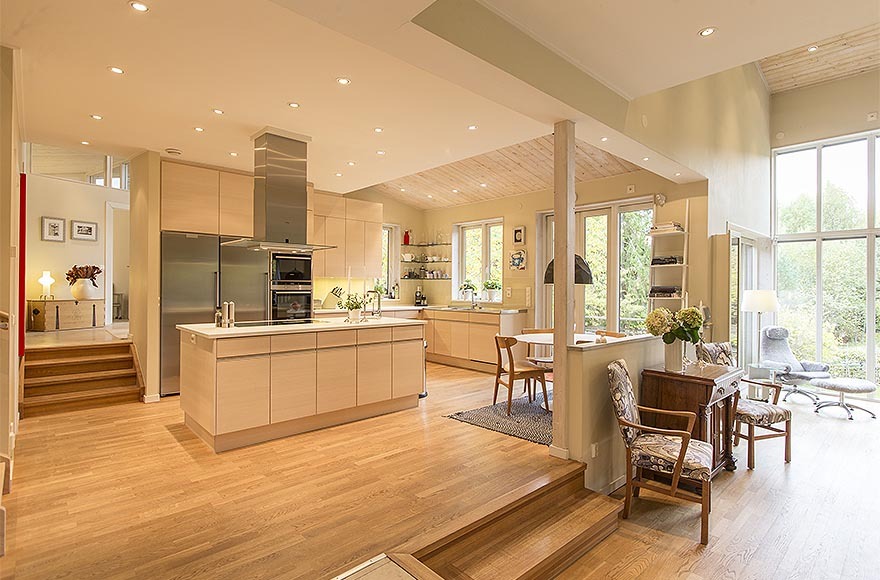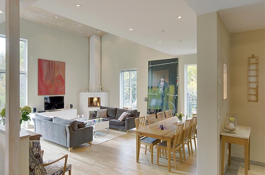 Ngoài ra, căn biệt thự có thiết kế nội thất nhỏ gọn và sang trọng mang những màu mật ong cấp độ khác nhau tạo cảm giác ấm áp. Từng chi tiết nhỏ đã được sắp xếp cẩn thận để tạo ra không gian thông thoáng điển hình cho kiểu nhà Thụy Điển và cũng để làm nổi bật đồ nội thất. Kết quả ấn tượng là một ngôi nhà tinh tế và ấm cúng.