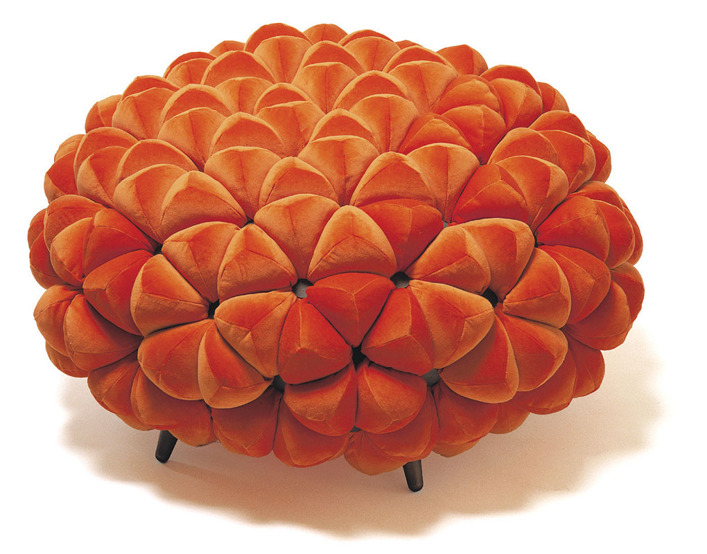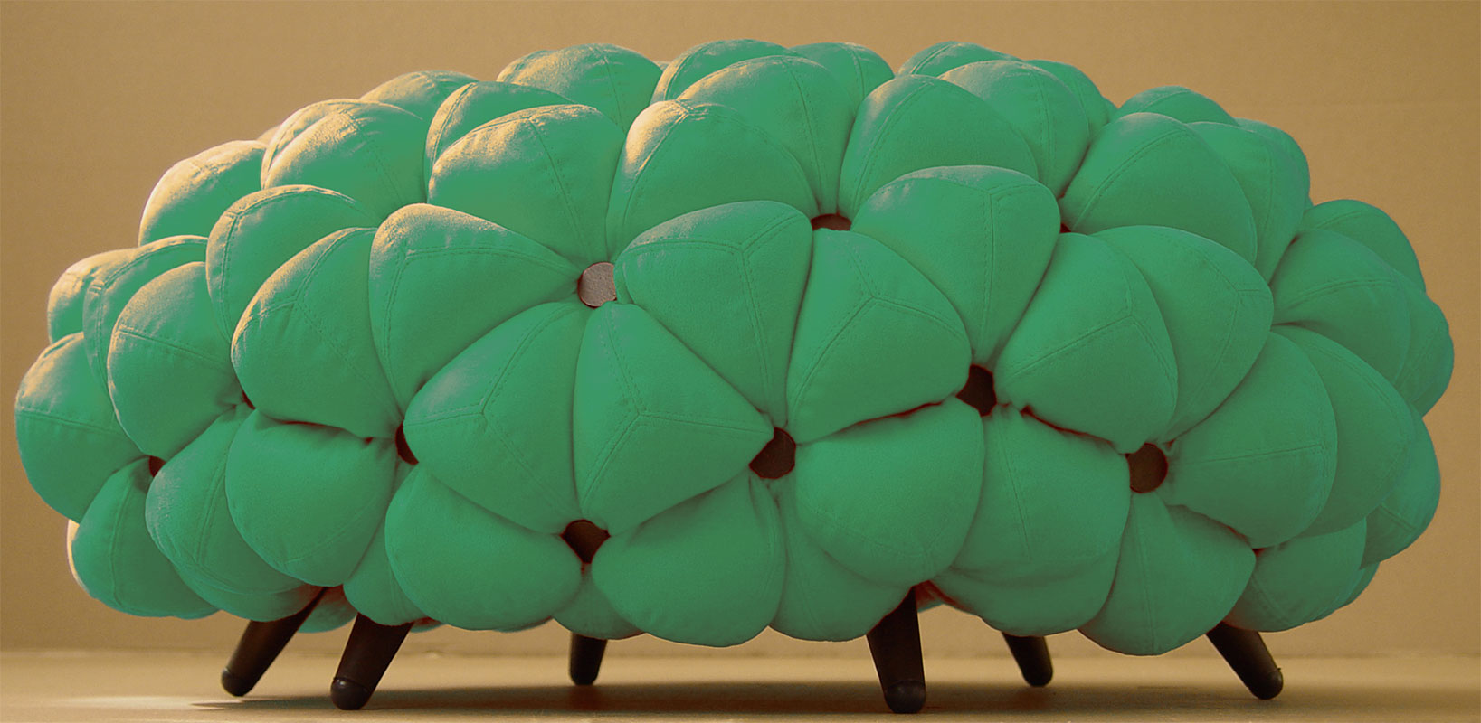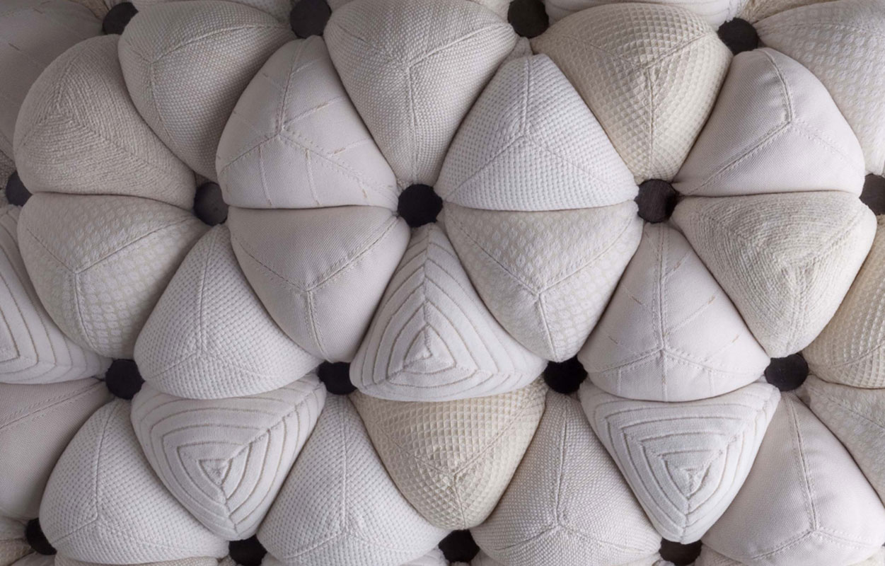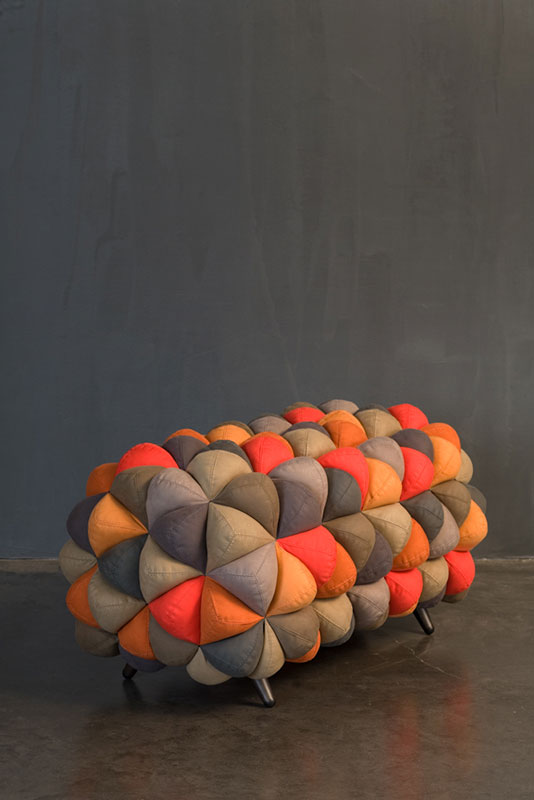 Những chiếc trường kỷ với phần đệm được ghép từ những khối tam giác ba chiều, mang lại cảm giác ấm áp và vui nhộn cho những không gian hiện đại.
